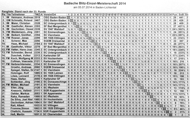 Badische Blitz Einzelmeisterschaft: Das 1:33 in der 428. Minute reichte nicht …