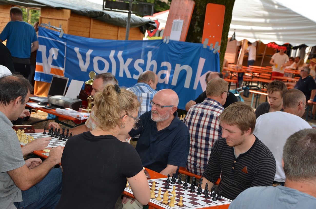 Das 10. Dorffest-Blitzturnier des SC Oberwinden lockte am vergangenen Sonntag wieder zahlreiche Schachfreunde aus Nah und Fern ins obere Elztal. Insgesamt 57 Teilnehmer und Teilnehmerinnen – den Sommerferien geschuldet etwas weniger als in vergangenen Jahren – hatten bei strahlendem Sonnenschein wieder viel Spaß beim 11-rundigen Turnier rund um den Bier- und Würstchenstand des S