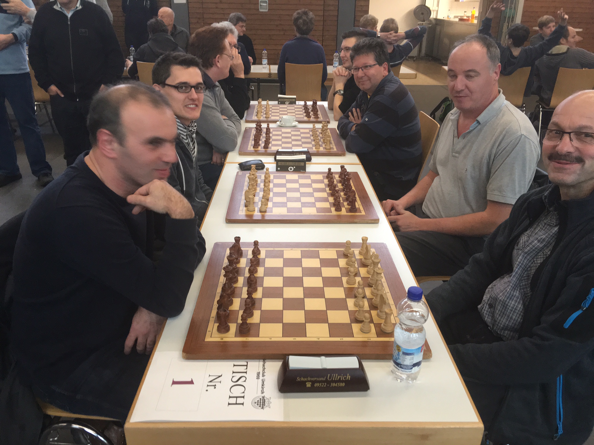 Mario an Brett 1 schrammte knapp am Brettpreis vorbei. Alex spielte an 2 ein gutes Schach, auch wenn er in der letzten Partie noch einen sicheren Sieg durch einen unmöglichen Zug verpatzte. Das Blitz-Monster konnte an Brett 3 nicht ganz seine stärken Ausspielen, zumal er in seinen Standarderöffnungen hin und wieder die Zugfolgen verwechselte. Die Überraschung war Franz-Paul, der fast in jeder Partie stärkerer Gegnerschaft gegenüber sass, dabei eine sehr gute Figur machte und 50% holte.