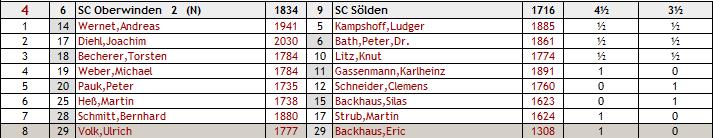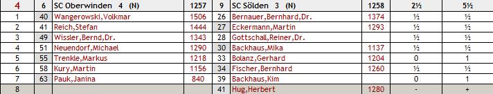 Landesliga Süd: Oberwinden II – Sölden I 4,5 : 3,5
