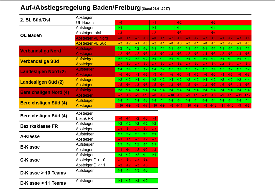 Bisher galt die Regelung, dass bei 0 Absteigern aus der 2. Bundesliga 3 Mannschaften aus der Oberliga Baden abgestiegen sind und dafür 4 Mannschaften aus der Verbandsliga aufsteigen.