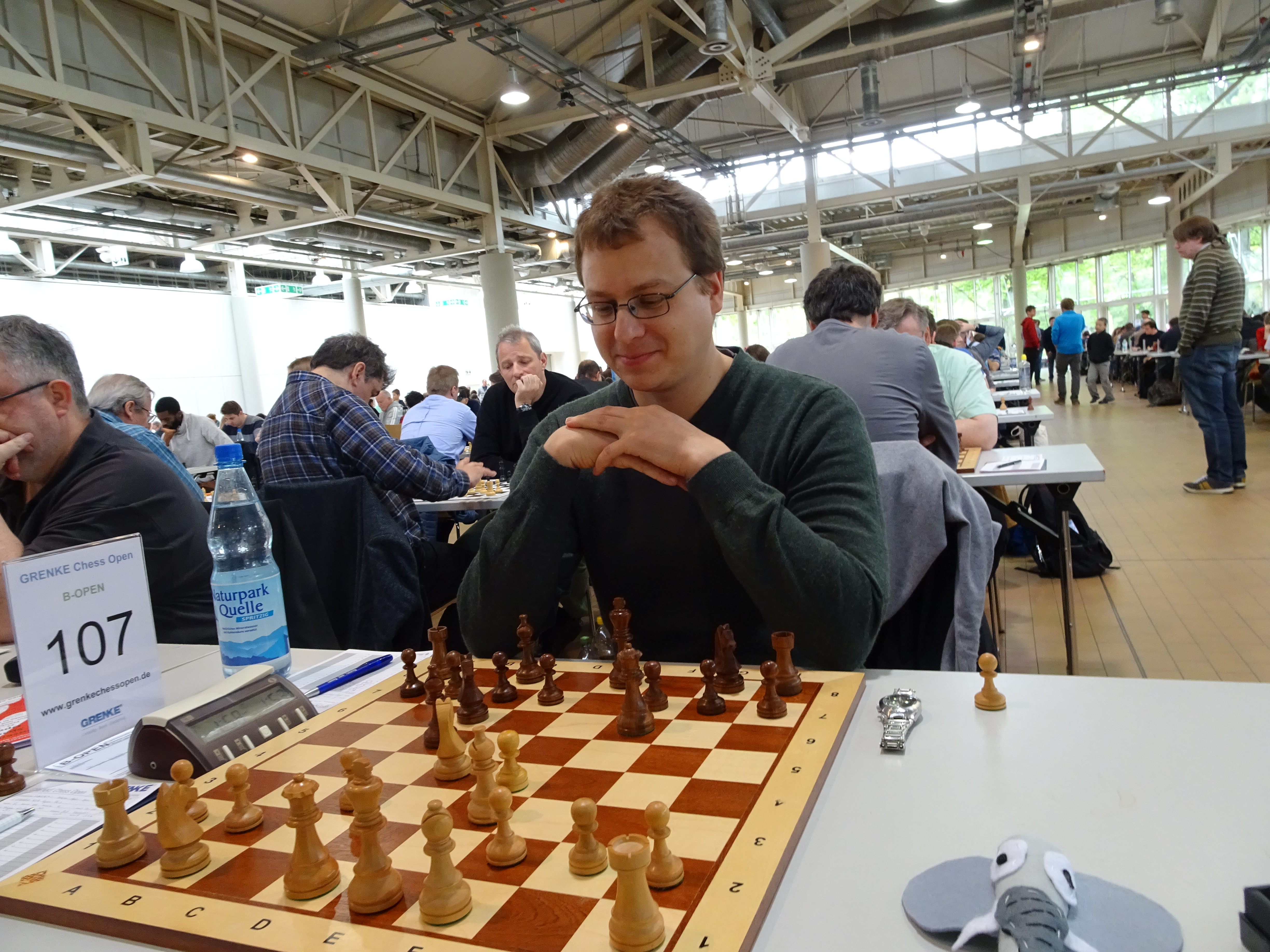 Zurück zu unseren Jungs: Das Grenke Open ist mittlerweile abgeschlossen und unsere Spieler haben solide gespielt. IM Borya Ider erreichte mit 6 Punkten den 91. Tabellenplatz im A-Open, während Philip Germer mit 4 Punkten 384. wurde. Im B-Open rückte Thomas Ruf nach zwei Schlussrundensiege mit 5,5 Punkten auf den sehr guten 89. Platz. Ebenfalls im Feld unterwegs waren unser Werbepartner Bernd Krüger und der ehemalige Jugendtrainer von Andi, Alex und Basti, Roland Hauk.