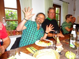 Um es vorweg zu nehmen, es war ein herrlicher Abend. Die Atmosphäre des kleinen Weinlokals ist sehr ansprechend. Die wenigen Sitzplätze waren alle belegt und viele spontane Gäste mussten noch abgewiesen werden. Ursprünglich sollten wir im wunderschönen Garten sitzen, was leider wegen des Wetters nicht möglich war.