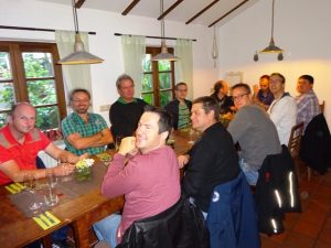 Trotz der dieses Jahr früher stattfindenden Lese und dem regen Treiben auf dem Gut ließ es sich der Chef nicht nehmen uns zu begrüßen und ein paar einführende Worte zu sprechen. Die zur Verkostung gegebenen Weine waren sehr lecker und schnell bildeten sich kleinere Grüppchen, die sich auch noch im Nachgang mit ihren neu entdeckten Lieblingsweinen versorgten. Die Favoriten des Abends waren dabei der Weiß- und der Grauburgunder sowie der Pinot Noir.