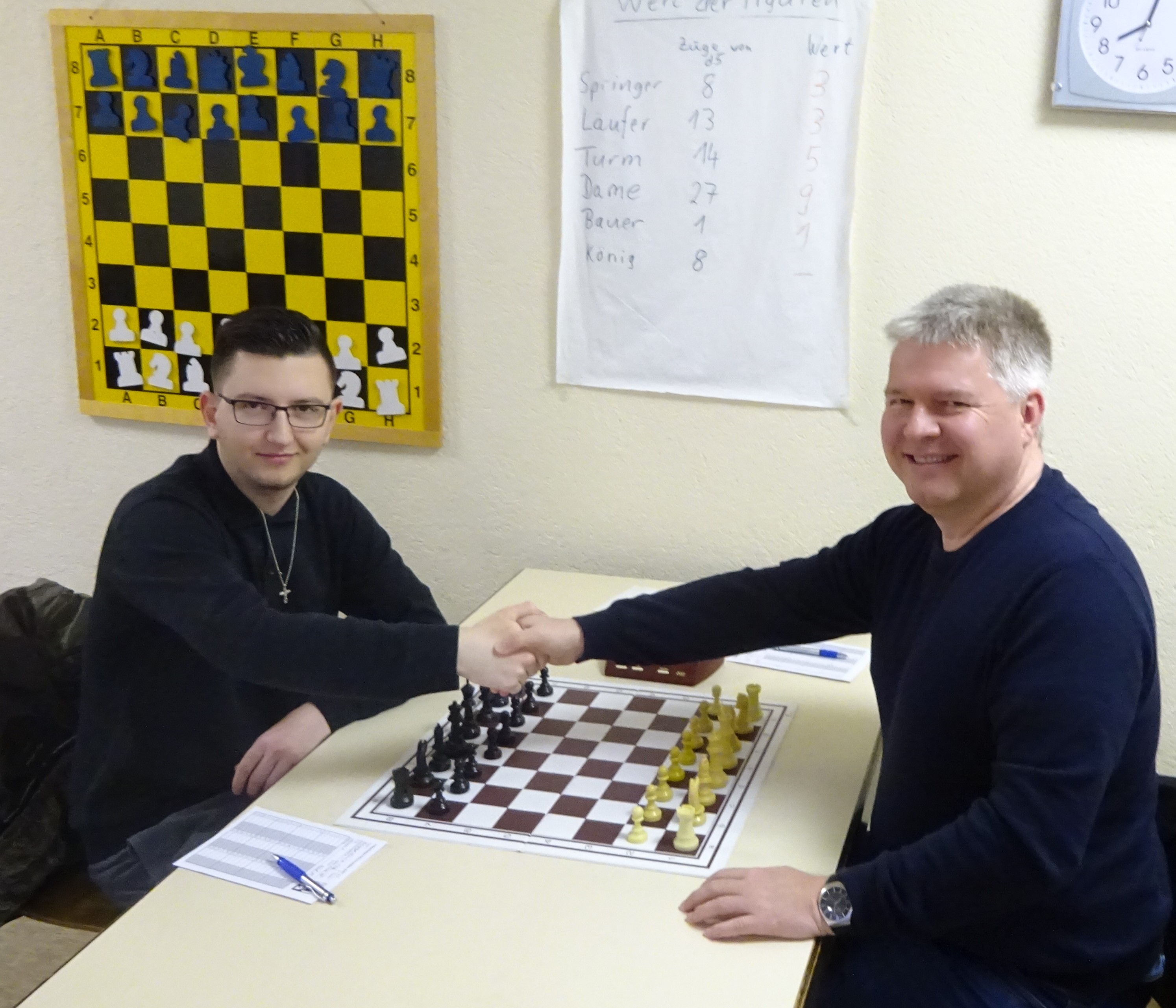 Parallel fand das Bezirkspokal Halbfinale zwischen Peter Pauk und dem Heitersheimer Markus Merkel statt. Lange ausgeglichen setzte sich auch hier in der Zeitnotphase der DWZ-stärkere Spieler durch.