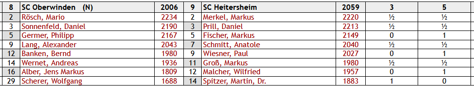 In der längsten Partie des Tages trennte sich am Ende M. Rösch am Ende mit Remis im 22er-Duell.