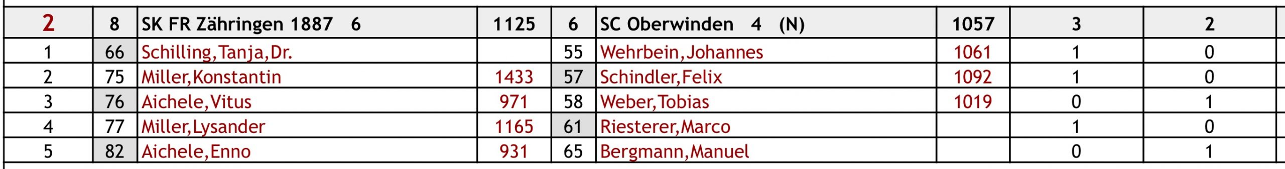 Auch die Dritte konnte ihr Match im Lokalderby gegen Waldkirch 2 mit 5,5:2,5 gewinnen und ist nun Vierter der Bereichsliga. Die Abstiegssorgen kann man erst mal beiseite legen und dürfte schon früh einen Riesenschritt zum Klassenerhalt gemacht haben.