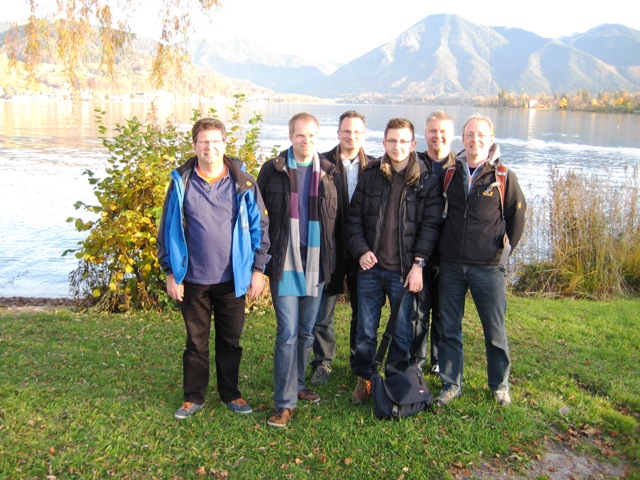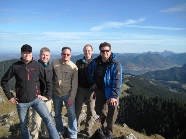 Apropos Wanderung; Torsten „Bü“ Becherer hat extra den weiten Weg auf sich genommen um uns zu besuchen, zu unterstützen und natürlich mit uns zu wandern. Da wollten wir natürlich schon was besonderes bieten und haben uns die Tegernseer Hütte angetan. Angetan deshalb, weil der Schreiber dieser Zeilen sein nicht ganz unbeträchtliches Gewicht über 900 Höhenmeter, bei denen der steile Einstieg schon fast der angenehmste Teil war, nach oben schleppte. Der Blick und die Kartoffelsuppe mit Wiener entschädigten dann natürlich für die ganze Anstrengung und auch mancher Kollege hatte ja sein Päckchen zu tragen ;-). Da Bü nicht um 16 Uhr am Brett sein mußte haben sich unsere Wege beim Gipfel getrennt und er gönnte sich noch den langen Abstieg bis Bad Wiessee, während wir doch einen kleinen Termindruck bekamen. Aber mit Zeitnot kann der Schachspieler ja umgehen. Die sportlichere Fraktion von uns, Alex und Mario, haben sich den Stress des Fußballspiels SC Freiburg gegen Eintracht Braunschweig angetan. Im Gegensatz zur Übertragungsrate des Spiels Eintracht Frankfurt gegen den FC Bayern vom Vorabend, bei dem Alex Sky to go für die zweite Halbzeit fast 90 Minuten benötigte, war Dank Herrn Hanke, der sein Netzwerk zur Verfügung stellte, die Übertragungsrate hier perfekt.